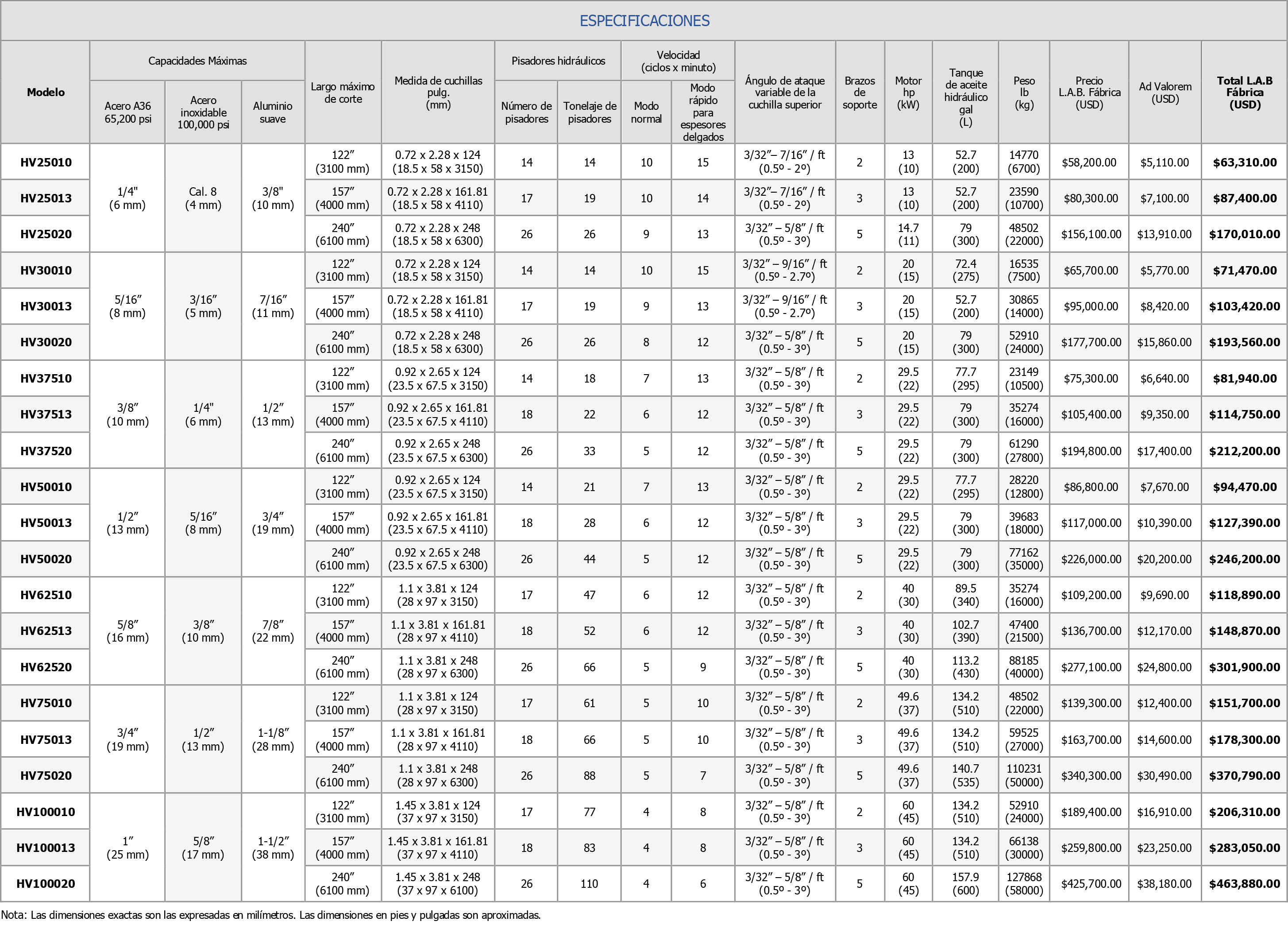 CIZALLAS HIDRÁULICAS